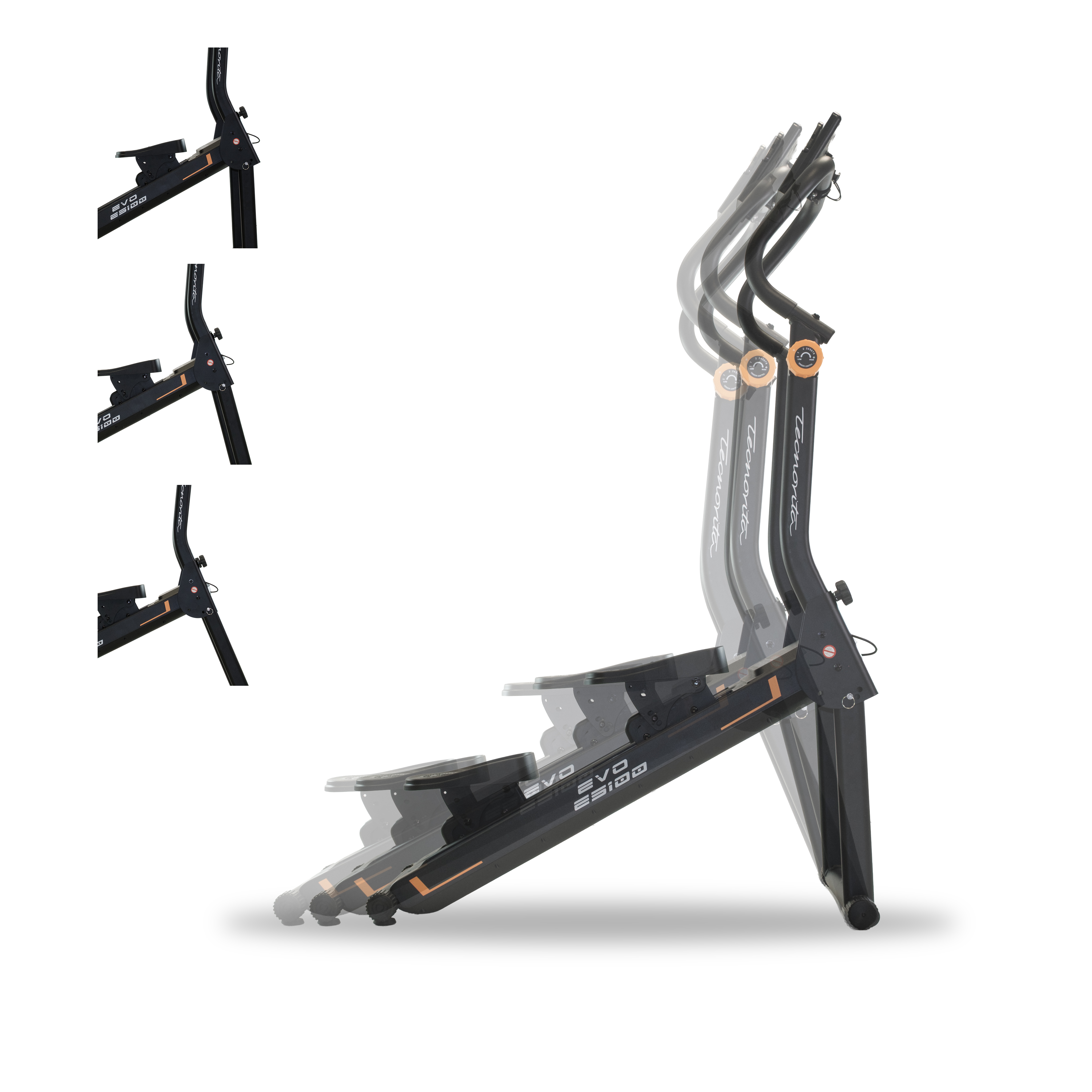 3 positions qui s’adaptent à différents utilisateurs et styles d’entraînement. Foulée de 48 cm pour un mouvement ample, fluide et confortable.